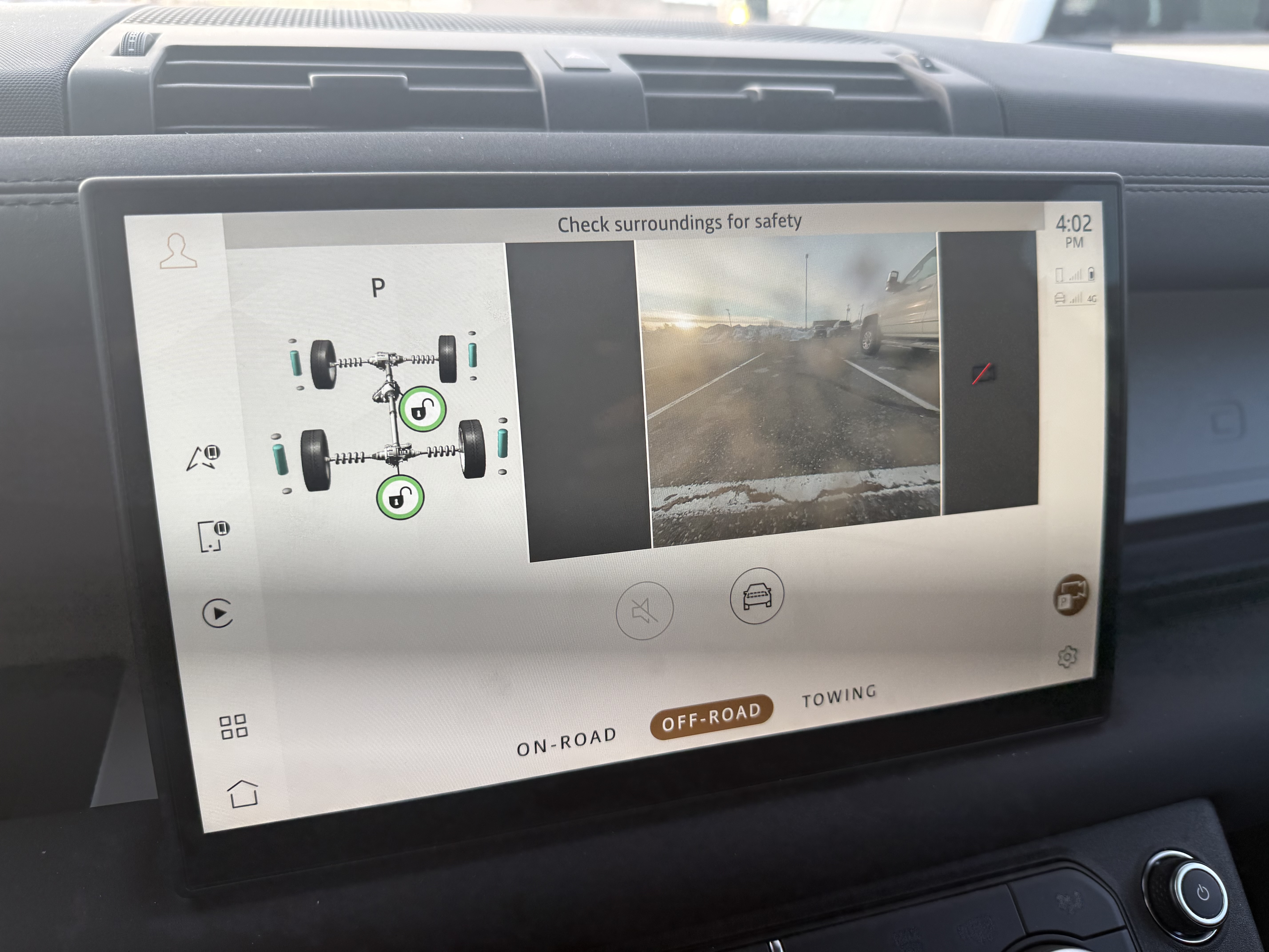 The rendering is real-time because the vehicle stitches together multiple camera views into one and then renders the vehicle so you can see your surroundings and the vehicle at the same time. I’ve tested many other makes and models over the last 10-15 years that also showed this view, but it is often above the car (known as bird’s eye view) and not the 3D angle of the Defender, giving you the impression there is a drone or follow-cam to help.